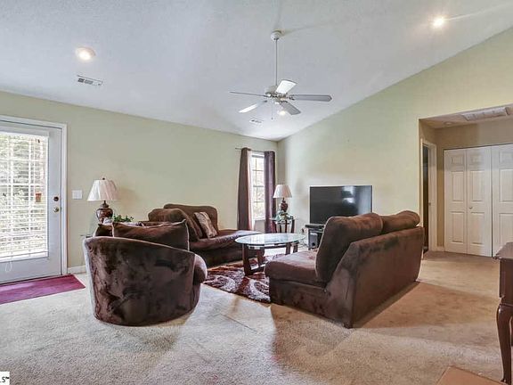 Charming home in Mauldin located in small community! This home is conveniently located to interstates, Donaldson Center and walking distance to Greenbrier Elementary School. This home features an open floor plan, vaulted ceilings, 4 bedrooms, and 3 full bathrooms. This home is a split floor plan with two master bedrooms and en suites on one end of the house. The kitchen boasts a large eat-in kitchen area, ample cabinet space, and a refrigerator that conveys with the home. The master bedrooms are spacious and includes a master bathroom with double sinks. The additional two bedrooms are also a great size with nice closet space. Outside boasts a large patio space and private backyard backing up to the woods.
