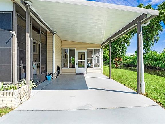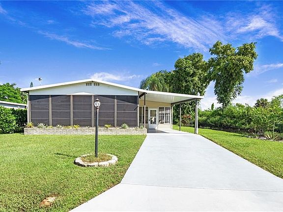 Beautifully updated home located at the end of the lane on a lovely canal providing a very peaceful setting. Enjoy two enclosed lanais, one on the front of the home and a second, more private space, overlooking the canal. This home has 2 roomy bedrooms each with large closets and 2 recently renovated bathrooms. The home boasts a beautifully updated kitchen and luxury vinyl flooring throughout. It also has newer windows and AC. The backyard is fenced and shielded from the neighbors by a hedge. The community is a fun and pet friendly 55+ neighborhood with many activities to keep you busy. There is pickleball, shuffleboard, water aerobics, game nights, as well as holiday parties and monthly brunches. They have a lovely heated community pool, a spacious clubhouse, and room for your boat or RV in the community storage lot. You own the land and the community fees are a very low $125/mth. Located just 12 miles to both downtown Naples or Marco Island, don’t wait to start enjoying your sun-soaked Florida lifestyle.