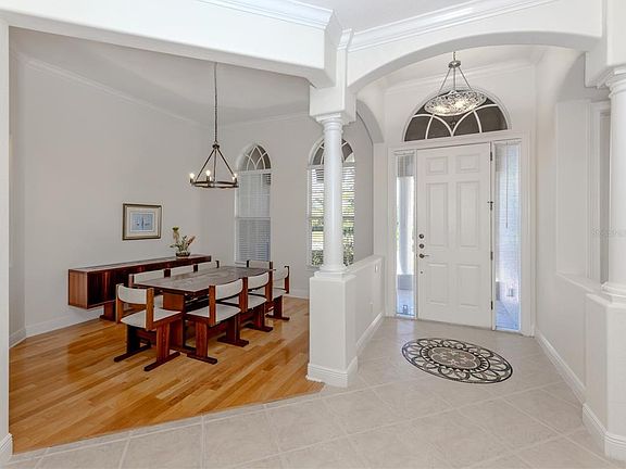 Leave the cares and stresses of the world behind as you step inside your personal sanctuary. Enter and let your eyes feast on the tropical haven that is your lanai. Wander past the living room and dining room to feel the warm embrace of the heart of the home. Whether it be entertaining or family life, this house is ideal for you. The kitchen is large with newer appliances, large breakfast room with views of pool. Three bedrooms and two baths on one side of home accommodate family and guests. There is a first-floor study next to the large primary bedroom which is a peaceful retreat from the cares of the world. It contains a beautiful bath, walk-in closets, and an intimate sitting room for reading or contemplation. Upstairs you will find an amazing room overlooking an equally amazing view. The room is decked out with built-in desk shelves, drawers, to be an incredible office for remote work, writing a best-selling novel, working out or converting to an artist studio, game room with pool table, or grandchildren's play room/bunk room. The lanai features a large pool with spa and high-top table for socializing, an outdoor shower and beautiful outdoor kitchen. The whole area is a private oasis with mature trees for privacy and a long lake view. All this in the popular Venetian Golf & River Club where you can take advantage of amenities right out your door. Walk to the restaurant and enjoy Chef Bryan's yummy offerings which include special dinners, prime rib nights, pasta nights, burger nights, and pizza nights, and more. Walk to tennis, pickleball, lap pool, water aerobics, tiki bar, gym, free exercise classes, many games like bridge, mahjong, hand and foot. You can even hop on to the exotic boardwalk through the jungle down to the Myakka River and the nature preserve from your backyard. It is all at your fingertips. Not to mention the proximity of this great subdivision to the highway, hospital, fire department, public beaches and the wonderful quaint town of Venice with its many restaurants, shops and theater. This is more than a house, it is a new way of life. The way life should be!