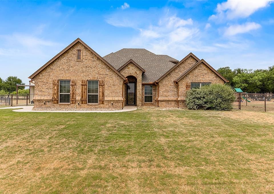 Stunning home on one acre with a shop in the Brock ISD. Looking for a custom home with room and a shop in a fantastic neighborhood? Here it is! 3 bedroom 2.5 bath with a bonus room upstairs. Kitchen features granite counters, walk in pantry, tile flooring and beautiful cabinets. The living room features a gorgeous wood burning fireplace, wood flooring, decorative lighting and plantations shutters throughout. Master is nice size and is seperate from the other rooms. Walk in closets in the 2 other bedrooms. The property features a 30x60 Insulated workshop with 14 ft side walls and 2 12x10 roll up doors. All this on an acre and a cul de sac! Beautiful trees in the backyard. This is a must see! 2022-07-25