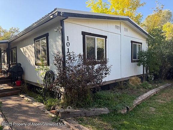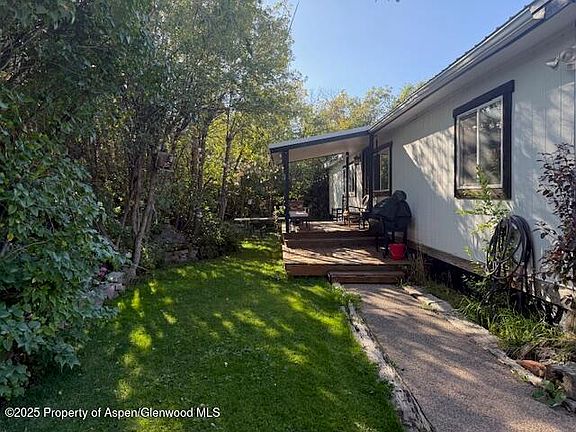 Affordable mid-valley living in the El Jebel Mobile Home Park! This is NOT real estate-you do not own the land. This extensively remodeled 24x60 (1,440sf) 1981, 3 bedroom, 2 bathroom plus office mobile home offers nearly everything that you need. Situated on a private lot with lots of trees and bushes, it features a partially fenced lot and a covered +/-8'x11'9'' front porch-ideal with new metal roof (2015) for outdoor living • New back porch (2025) • Interior Features & Upgrades: New metal roof ( 2018-$13,000) • On demand water heater( 2023) • Furnace (2024) • Insulation blown into the ceiling (2024) • Added some insulation under home (2024) • New furnace thermostat ((2024) • Kitchen Remodel (2015) and Appliances: Oak cabinetry, with black granite countertops, GE-refrigerator (new 2024), garbage disposal (2024), LG-range with grill, microwave, new stainless-steel sink and faucet, GRE dishwasher (2019), new lighting and open stainless steel shelving and new vent hood. Samsung washer & dryer (2020), +/- 10'4''x11'3'' wood storage shed new asphalt shingle roof (2015) • Primary Bathroom Remodel (2015): New vanity, new sink and facet, new toilet ,new custom fossil stone countertop, new wall sconces, added claw foot tub, new mirror, slate flooring, added barnwood trim, tiled around tub.• Hall bathroom remodel (2016): New toilet, new vanity with new sink and faucet, new mirror, tiled walls in walk-in shower with rain and wall showerheads, new wall sconces. Flooring: Laminate flooring throughout except for slate flooring in both bathrooms. • Windows: New Double pane (2015) • Replaced all bedroom closet doors (2025) • Repainted all interior walls (2025) • Most interior lights replaced with LED light (2025) • Added pine baseboards everywhere ( 2023-2025) • Repainted interior (2025) • Repainted exterior (2023). • Replaced all doorknobs to all bedroom doors (2015) Exterior & Location: • Outdoor Living: Large covered front porch, ideal for relaxing or entertaining, +/- 10'4''x11'3'' wood storage shed with new asphalt shingle roof (2015) • Convenient Location: Close to RFTA bus service for easy commuting and Willits. • Space rent $1000/month includes water, sewer, and trash pickup. Two dogs allowed with some breed restrictions at an additional $25/month per dog. • Cats allowed. •Roommates are allowed. Renting of the mobile home is allowed at an additional $150/month. • Security deposit is equal to 1 month's rent • Home is nestled in the heart of the Roaring Fork Valley • The convenient, mid-valley location is only minutes to Willits Town Center with all of its amenities, Basalt and about 25 minutes to Aspen and its' 4 world class ski mountains. • Natural Gas: Black Hills Energy. Electric: Holy Cross Energy. Water: Provided by the El Jebel MHP with 3 on-site wells. • Sewer: Mid Valley Metropolitan District. This well-maintained, move-in ready home combines comfort, quality, and location—don't miss out!
