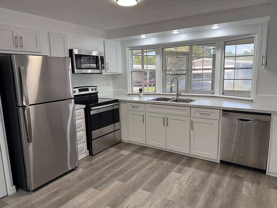 This home was redone completely in 2025 and will offer 6 months free rent to the person who buys it. New laminate, new fixtures, new stainless appliances. Master has 2 closets, with one being a walkin. Inside laundry. New pool and immense hot tub. poolside grilling, pickleball and tennis, shuffleboard and bocce. 4 miles from the boat launch to the Gulf. Active community with trips to plays, dinners, dances, and live bands. Perfect for a sunset trip around the lake with your favorite beverage. Christmas party, community olympics. Naples is the pickleball capital of the worth, hosting the US Open each year. Fish the 10,000 Islands or swim at the white sand beaches of Marco Island or Naples..