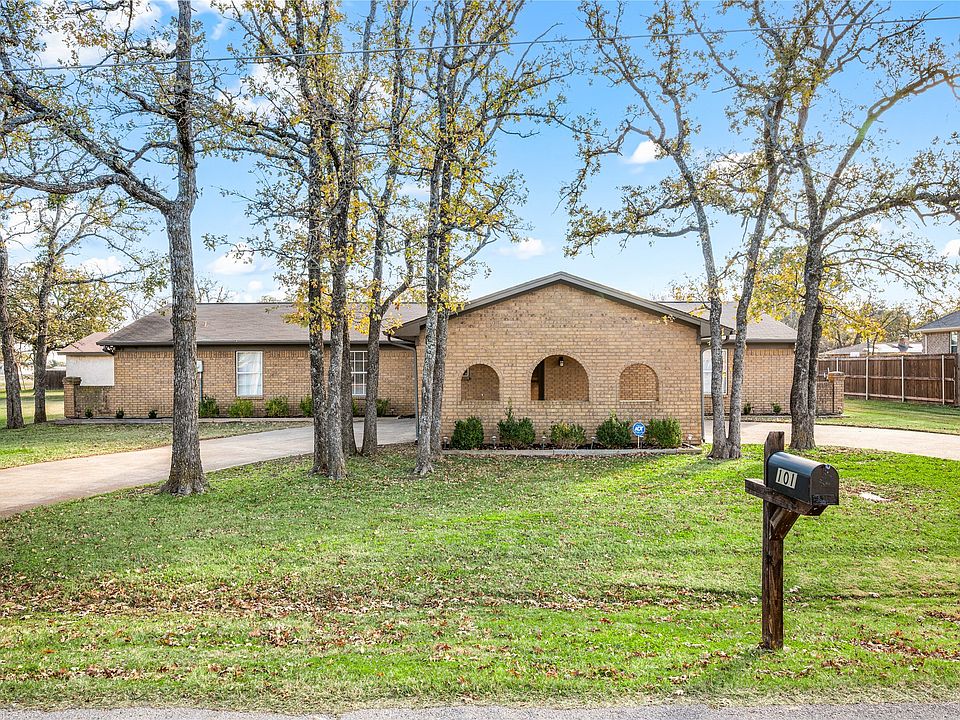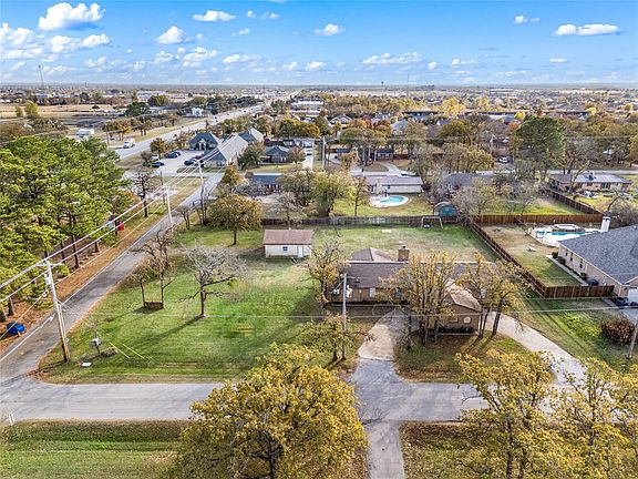 Exceptional Opportunity Spacious Estate-Style Home on a Rare Double Lot. This beautiful one-story brick home sits on two oversized lots and offers an inviting blend of comfort, charm, and flexibility. A circular drive leads through a classic porte-cochère, welcoming guests with timeless elegance. The moment you step inside, you’re greeted by a warm, welcoming atmosphere that instantly feels like home. Hand-scraped hardwood floors flow through most of the home, complementing the open floorplan and creating a seamless connection between the spacious kitchen, dining area, and cozy family room. The kitchen features granite countertops, a glass electric cooktop, abundant cabinetry, generous counter space, and mostly stainless-steel appliances. Ceramic tile in key areas ensures easy maintenance. The large utility room doubles as a walk-in pantry with space for an extra refrigerator or freezer, along with full-size laundry accommodations. The inviting family room showcases a brick wood-burning fireplace, the perfect spot to unwind and curl up on the couch and read a book or watch a movie. Throughout the home, thoughtful details and extra storage closets add convenience and charm. Each bedroom offers generous space, and the huge second living room with sliding glass doors, a walk-in closet, and a chimney breast ready for your freestanding fireplace can easily serve as a 4th bedroom or versatile flex space. The bill payer’s suite features an en-suite bath with granite counters, a custom-tiled shower, and a walk-in closet. But wait there’s more, step out on the covered back patio to enjoy the expansive back and side yards open the door to endless possibilities. The additional lot includes a detached 2-car garage and exceptional potential to create a lush outdoor oasis, maybe add a future swimming pool with an outdoor kitchen, or simply enjoy the extra green space as it is. You could even develop the extra lot or sell it off and cash in. So many opportunities await!