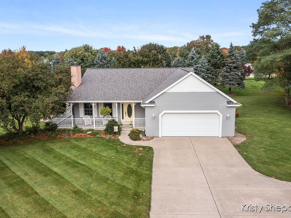 Great daylight ranch in Grandville Schools on one acre with a 24 x 27 outbuilding. Great country feel with suburban conveniences just five minutes away. Builders own home features a great wrap around porch and large deck, large tree-lined yard creates privacy and allows plenty of room for outdoor fun. 5 large bedrooms, 3 full bathrooms, awesome combination living room and recreation room with wet bar in the basement is great for making memories with family and entertaining. Attached garage is insulated, heated by thermostat, has water and convenient floor drain. Second garage with 10' ceilings is a great place for a work shop or extra storage. Close proximity to M-6 makes commuting to Holland or Grand Rapids a breeze.