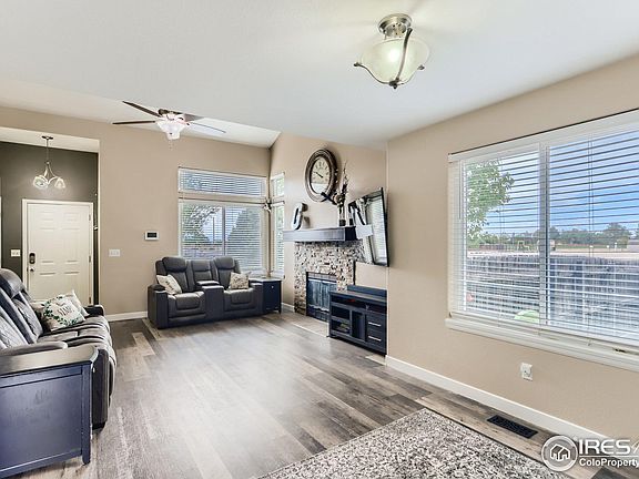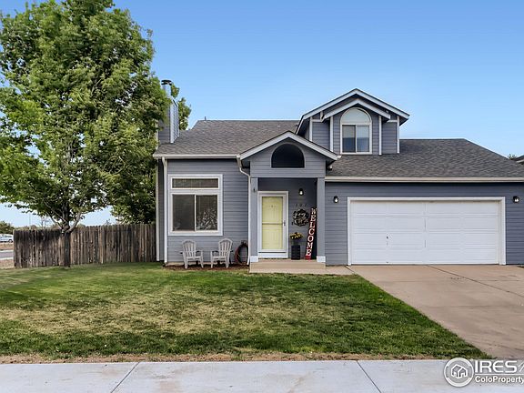 CHARM, STYLE & PEACEFUL SMALL TOWN LIVING! Great two story features open concept living and dining rooms, wood burning fireplace, large eat-in kitchen, spacious primary bedroom with en-suite bath, and finished basement with family/rec room, storage, 4th bedroom and full bath. Kitchen offers lots of storage and counter space, stainless appliances including the french door refrigerator and tile backsplash. Easy care LVP flooring in all the right places. Lots of newer items including: exterior paint, siding, windows, roof, central a/c, flooring and concrete patio. Surprisingly spacious 3 car tandem garage is perfect for all the toys or the extra long pickup trucks. NO HOA and NO METRO DISTRICT = affordable taxes!!! Enjoy summer evenings in the big yard and included hot tub! Fantastic corner lot and the new Community Center across the street. Well cared for and improved--hurry to see this beauty and make it yours!