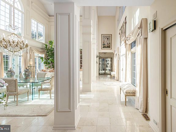 Former model home in Siena in Cherry Hill with loads of custom features and a totally private backyard with swimming pool and travertine patio surrounded by total privacy. This custom home has a lot of special features thru out, which include surround sound, marble floors, 2 story ceilings, recess lights, oversized moldings, sun that shines thru the whole house because of the large windows and high ceilings, open floor plan, 1st floor primary suite with custom painted walls, custom TV entertainment area, 2 large walk-in closets, large master bath with marble floors, marble vanities, marble surrounding tub and marble oversized shower, and private water closet. Atrium doors off the bedroom that lead out to the patio and pool area. First floor den with cathedral ceiling, custom shelving which could also be a personal home office. There are custom built-ins in both the living and dining rooms which have custom moldings and built-ins. Large open kitchen area that overlooks the family room and leads out to the back patio and pool area. Granite countertops, newer refrigerator and cooktop, large pantry closet, recess lights and loads of kitchen cabinets that overlook the family room with custom fireplace with marble surround, recess lights, bleached hardwood floors and atrium door that leads out to private backyard. First floor powder room with custom vanity and faucets, mirrored walls and marble floors. Back hallway has washer and dryer and sink and side door to access side yard and back yard. The garage is currently being used as an entertainment room for children. Upstairs you will find 2 very large bedrooms with each having their own bathrooms and lots of closet and storage space. There is an additional den upstairs that could be used for a playroom or office or tv room. The backyard has total privacy great for entertaining plus a beautiful pool area, unfinished basement, all stucco home with brick walkways and mature landscaping.