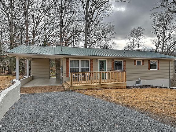 Perfectly pristine! This raised ranch has been meticulously renovated, featuring new windows and new HVAC, electrical, and plumbing systems to ensure not just functionality but peace of mind as well. Stunning new light fixtures illuminate every corner, casting a warm glow on the beautiful and durable hardwood-style flooring that flows throughout the home. The open-concept design creates a bright and welcoming atmosphere, accentuated by a breathtaking stone fireplace that is the focal point of the living room. The heart of the home lies in its completely updated kitchen, boasting high-quality Matrix cabinets, upscale granite countertops, new stainless-steel appliances, a sparkling backsplash, and thoughtfully selected fixtures. Both full bathrooms (one upstairs and one downstairs) are beautifully appointed, exuding luxury and style; and the bedrooms offer ample closet space, ensuring comfort and convenience. The finished walkout basement expands the home's living areas, offering a versatile family room/den that opens onto the spacious back patio and wooded back yard. A wealth of extra space downstairs includes a laundry room, a workshop, and plenty of room for storage. A durable metal roof crowns the structure, complemented by a covered carport and a newly constructed front porch adorned with charming cedar shutters. Situated just moments away from several parks, including the expansive Steele Creek Park with its 52-acre lake, accessing outdoor fun is effortless. In addition, a 20-minute drive to South Holston Lake and its array of docks and marinas offers endless possibilities for adventure on the water. Experience an unparalleled lifestyle of modern luxury, thoughtful design, and convenience in this immaculately renovated home - set up a showing today!