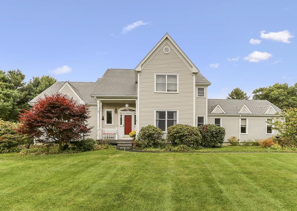 Regally set on a prime lot, this stately contemporary colonial offers generous room sizes, open floor plan, two story bridged foyer and family room complete with fireplace and wet bar. When not in use the bar can be closed off behind bi-folding joinery panels. Kitchen is updated with stainless appliances and features multilevel island with bar stool seating. Practically speaking, the thoughtful design of this home offers a mud room, laundry room and walk in closet just off the garage. Expansive deck overlooks the beautifully maintained, private back yard backed by stone walls. Cherished memories will be savored in this warm light infused open concept home. Don't miss out - take a peek at the floor plans, call the list agents and visit the open house!