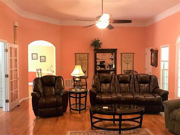 Very nice 3 bedroom, 2 bath home on 2 acres in Country Meadows. Beautiful hardwood floors thru-out, spacious great room with 11' ceilings and pretty fireplace. French doors lead to an office which could also be used as formal dining; a large, beautiful kitchen features ample counter space and cabinets, new stainless appliances include gas range, dishwasher and refrigerator. Split bedroom plan with nice master suite and Jack-n-Jill bath accommodating the 2nd and 3rd bedrooms. A nice sized deck on the back of the home is perfect for outdoor entertaining or just sitting and enjoying nature especially under newly installed Sunbrella retractable awning. An outbuilding with electricity also remains as does the washer and dryer. The owners have truly put a lot of love into this home but are ready to downsize ...