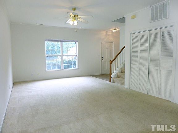 Ridgehaven Townhomes, walk to Carrboro High. Living and dining areas combine with carpet, ceiling fan. Kitchen has skylight, appliances included. One bedroom on 1st with vaulted ceiling, direct entry to shared bathroom. 3 bedrooms and second bathroom up. All bedrooms have carpet. Washer/dryer hook-ups. Patio. Attached storage closet. Playground. Pet w/fee & prior approval. For added $50/month, washer/dryer will be installed. $15/mo filter fee.