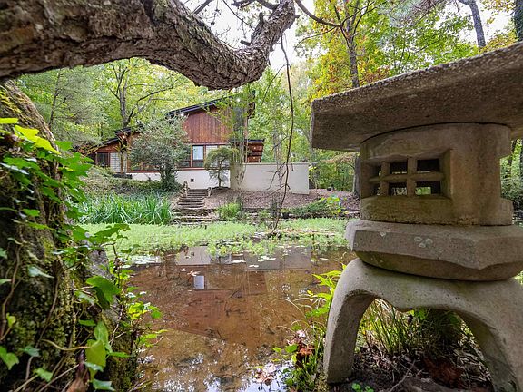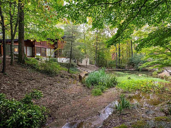 Escape to this way cool modern mountain home with Asian flair, designed by local architect William Garrison McCuen. Enjoy the zen of gazing at the amazing spring-fed pond designed by landscape designer Masashi Oshita. Set on almost 5 acres in River Bluff community, at the foot of the Blue Ridge Mountains, close to Table Rock State Park’s trails, just 40 min’s to Downtown GVL. Interiors feature open concept, soaring ceilings, and custom Shoji-motif windows. Both bedrooms & baths on main. 2nd Floor loft offers ideal home office space. Roof 2021. Already inspected at owner’s expense, repairs done, immaculate -- no guess-work! Current property tax reflects 6% rate for non-primary residence in SC. Septic is in back, pumped out in 2023. Park in driveway’s extra parking pad.