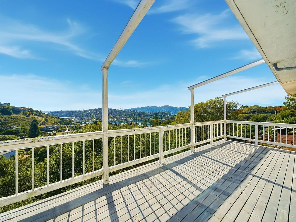 Opportunity is knocking - bring your contractors! This property offers beautiful water views of the Belvedere Lagoon, Corinthian Island, and even some city vistas. The lower level features a 2-bedroom, 1-bath layout with a deck, full bath, and exposed framing, providing a great canvas for customization. A huge lower basement with tall ceilings is accessible from the lower floor or via the exterior side steps, offering exceptional potential for expansion or storage. The property also includes a separate two-car garage with additional storage below. A rare chance to create something special in a prime view location!
