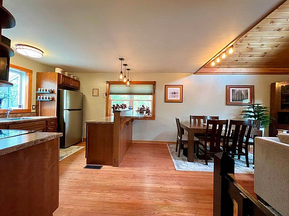 - Cathedral Ceiling(s), Kitchen Island, Kitchen/Dining, Living/Dining, Natural Light, Natural Woodwork