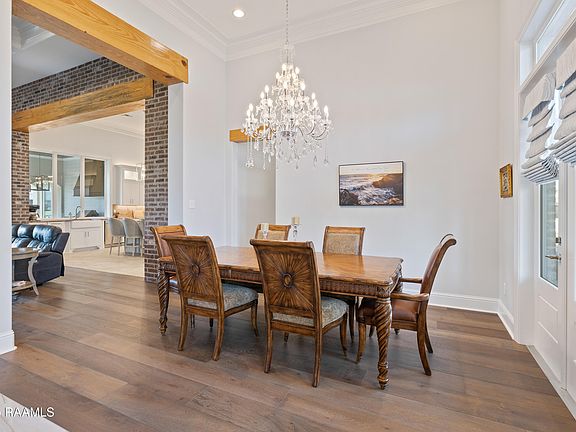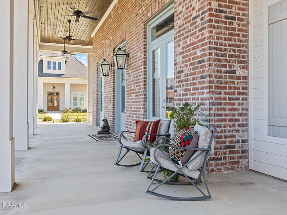 Welcome to 101 Rue de Nimes--a custom-built sanctuary of style and comfort. Home is more than just a place; it's a feeling, a lifestyle, and a refuge, and this residence brings that to life in every detail. Built by Ragin Cajun Construction, it offers a perfect blend of thoughtful design, showcasing intricate ceilings, brick accents, exposed beams, elegant crown molding, premium appliances, beautiful flooring, and stunning countertops. Located on a cul-de-sac street with picturesque corner lot beside a tranquil pond, you'll enjoy the soothing sound of the fountain from your covered patio, complete with an outdoor fireplace and full kitchen--perfect for year-round Louisiana style entertaining. The triple split floor plan provides both privacy and flexibility, with one wing featuring a bedroom, full bath, and private exterior access, ideal for a mother-in-law suite or private quarters. Additional features include a three-car tandem garage, a welcoming front porch, and a professionally installed 36 KW Generac whole-home generator. Lots of custom upgrades were added during construction, including heat pump AC, solid wood interior doors, fiberglass exterior doors, custom millwork, exquisite mosaic tile, ShowerGuard glass in the master shower, and special LED dome ceiling features. Exterior and structural improvements include a premium garage door, Italian tile patio flooring, a decorative mailbox, French drainage rock, and enhanced insulation for greater energy efficiency. This home is more than move-in ready--it's a true retreat, meticulously crafted for comfort, elegance, and modern living.