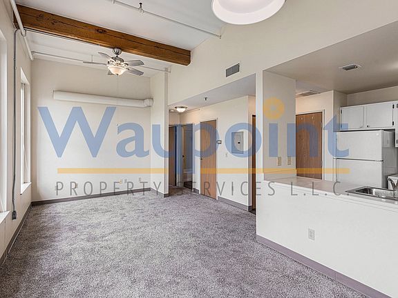Enjoy peaceful riverfront living in this charming 1-bedroom apartment located in a beautifully maintained historic building along the Flat River in Belding. This unique home blends classic character with everyday comfort, featuring tall ceilings, large windows, and architectural details that reflect the building's rich history.