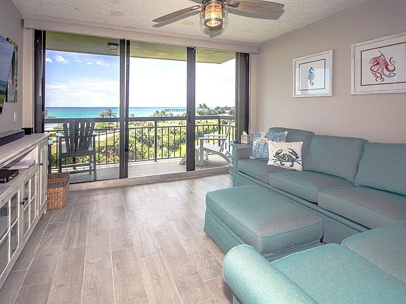 Ocean views in this 2 bedroom/2 bathroom, nicely furnished, seasonal rental condo. Community has beautiful pool and is conveniently located to Publix, restaurants, shops, beach, fishing, boating.4-month minimum seasonal rental $8,200/mo. (Dec 1 - Apr 30). 4-month minimum Off season rental $5,000/mo.