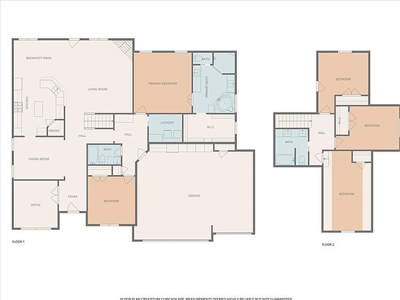 The main level offers a private primary suite with dual vanities and a huge walk-in closet, plus a second bedroom and full bath — perfect for guests. Upstairs: two more bedrooms, a full bath, and a versatile bonus room for play, work, or guests.
