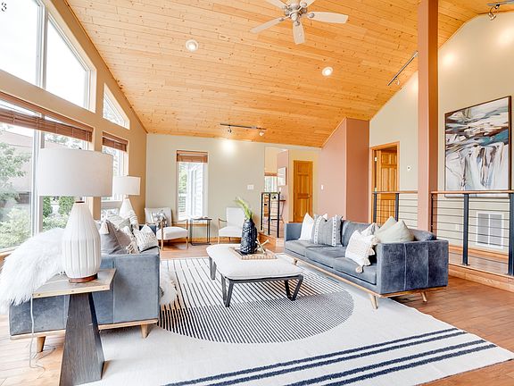 A Cathedral in the most desirable bluff neighborhood. Wake up every morning with the serene beauty of nature. Vaulted pine ceilings in the living room with large windows for great light, and a wood stove inspire a comforting warmth. Allow your gatherings to overflow onto the functional kitchen that features granite countertops, soft close cabinets, gas appliances. Noticeable features in the master-suite located on the main level are a roomy bathroom, jetted tub, tile surround standing shower, and its own private deck. As you walk down the beautiful wooden stairs into the daylight basement, you will find a versatile rec space that offers a full bath with a sauna, bonus room that could be used a 3rd bedroom, wine cellar, laundry room. Not to mention this lower level has heated floors and the upper level has hardwood floors throughout. This property is in a fantastic location-close to bike trails, local restaurants, and attractions on Jewett Blvd. Make your dream a reality and schedule a tour.