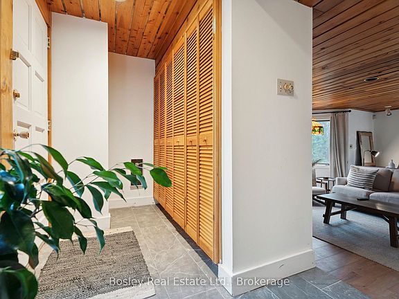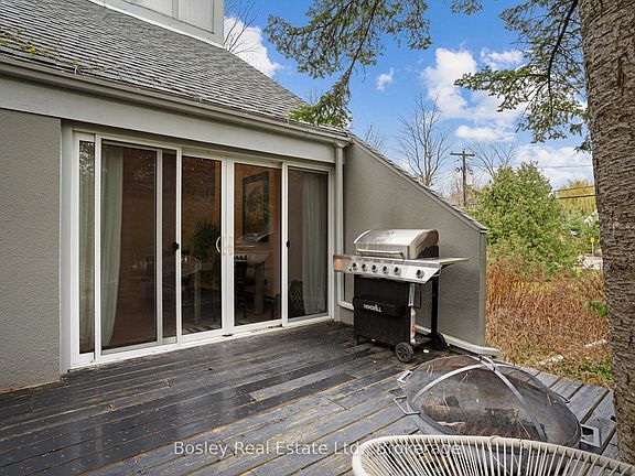 This is chalet life, the way it should be. Tucked among the trees in Georgian Woodlands, this mid-century modern retreat offers everything you need for four-season living or weekend escapes. With 4 bedrooms, 1.5 baths, and an oversized garage complete with a heated wax room for your gear, this home is equal parts comfort and character. Step into the great room and you are instantly greeted by sunlight pouring through large windows, cathedral ceilings overhead, and a wood-burning fireplace that begs for après-ski stories. The open-concept kitchen and dining space is made for slow mornings and long evenings, and there are multiple walk-outs to the deck for when fresh air calls. You will love the extra living room on the main floor, perfect for games night, movie marathons, or warming up after a winter dip in the hot tub. Upstairs, the vaulted-ceiling primary bedroom is bright and welcoming, with three more bedrooms and a 4-piece bath completing the picture. If it looks like all you need to bring is your clothes, you might be right-the furniture is negotiable, making it even easier to skip the setup and start enjoying life here right away. In less than 15 minutes on foot, you can be at Northwinds Beach or the base of Craigleith Ski Club. Whether you are a member at Craigleith or Alpine, or a pass holder at Blue, this location keeps you close to the action while still feeling like your own private retreat. And with Thornbury and Blue Mountain Village just a short drive away, the best of the area is always within easy reach.