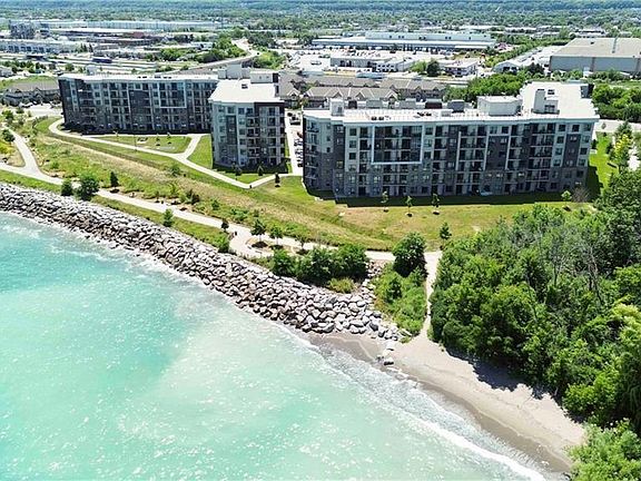 Enjoy waterfront living at the Sapphire at Waterfront Trails condominium. Great location being steps to shores of Lake Ontario with walking trails and close to Edgelake Park and Cherry Beach Park. Great amenities include: rooftop terrace/deck with panoramic views, a party/meeting room, recreation room, game room, fitness centre, community BBQ, bike storage and communal waterfront area. For pet lovers and quick outdoor access, enjoy the premiere feature of walking out right from your unit to for a stroll. A loading zone is in front of the unit which is great for loading/loading right to the unit, with the added benefit of no cars parking in front of the unit. Quick access to QEW and only minutes to Confederation GO station than 9 km away and offers a marina, beach access, picnic sites... great for a full-day outing. The Heritage Green Community Dog Park is 4-5 km away. Newer building provides turnkey living, less maintenance, and loads of lifestyle perks. Come and see all that this home and area have to offer.