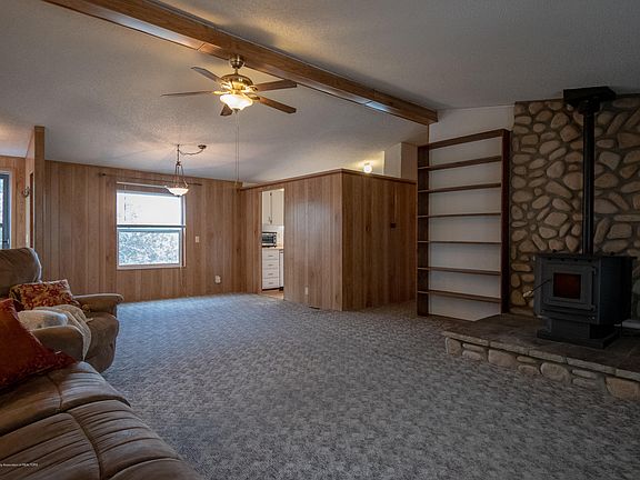 Looking for a home with some elbow room? This one level, 3 bedroom / 2 bath home is located on a large corner lot (.73 acres) with nice valley and Sierra Blanca views. Property includes a workshop, 2 storage sheds and a small barn. Horses are allowed and the riding Craftsman mower will convey. The home has a metal roof, several new windows and a new Samsung gas range. The large living room has built in shelves and a pellet stove to keep you cozy in the winter. In the summer, enjoy a cool breeze on the covered front porch. Paved roads and city water make access easy. Located minutes from grocery, schools and Mercantile in Capitan New Mexico.