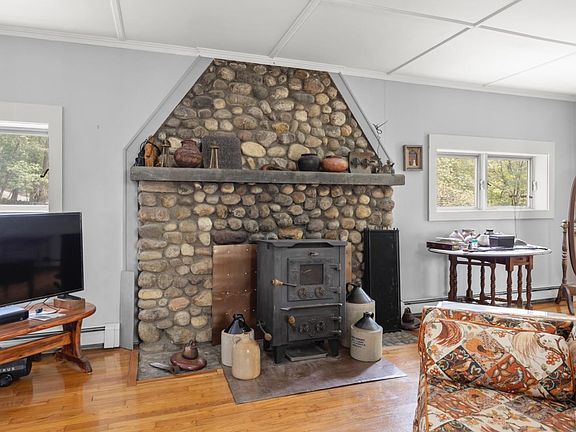 Circa 1920 Elizaville farmhouse on 5 secluded acres. This 2 bedroom/1.5 bath home features a spacious living room with a beautiful cobblestone fireplace, a light filled four season room, an open kitchen/dining room with direct access to the back deck and wood floors throughout. Two car detached garage with 3 attached rooms that would be great studio/office space. Mature trees with a combination of open & wooded land, stone walls, and garden areas makes for a very pretty setting.