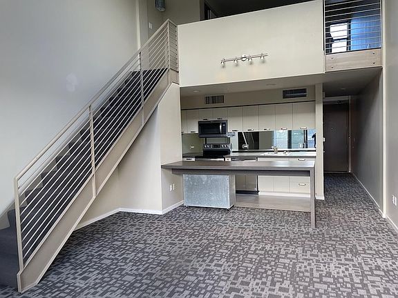 Upscale penthouse loft apartment in downtown Santa Cruz. New interior finish with designer color scheme, newer carpets, built-in waterfall peninsula for dining or work space. Loft bedroom overlooking living room, plus study/office or second bedroom. Private balcony with views towards the Eastside. Common area rooftop patio and laundry room. Just upstairs from shops, restaurants, entertainment, and transportation. Downtown location offers a unique lifestyle with Farmer's Market, Antique Fair, Maker's Market, all along bustling Pacific Ave. One year lease, water and garbage paid.