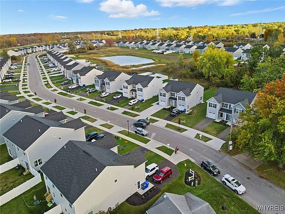 Welcome to Queens Landing! This stunning 3-bedroom, 2.5-bath townhome, built in 2023, showcases modern living at its best—offering style, comfort, and energy efficiency with no HOA fees. The open-concept main floor features a bright great room filled with natural light, a spacious dining area, and a contemporary kitchen complete with granite countertops, stainless steel appliances, a center island, and elegant cabinetry. Upstairs, you’ll find Primary Bedroom with a walk-in closet and private bath with dual vanity, plus two additional bedrooms, a full bath, and convenient second-floor laundry. A full egress basement provides excellent space for a gym, home office, or family room, while the private backyard with no rear neighbors is perfect for relaxation or entertaining. Additional features include a one-car garage, private driveway, tankless water heater, high-efficiency furnace, and central air. Located in the West Seneca School District and close to shopping, dining, and major highways, this move-in-ready home is the perfect blend of comfort and convenience! Showing starts immediately. Open House Sat 10/25/25 and Sunday 10/26/25 , 12:00-2:00 PM.