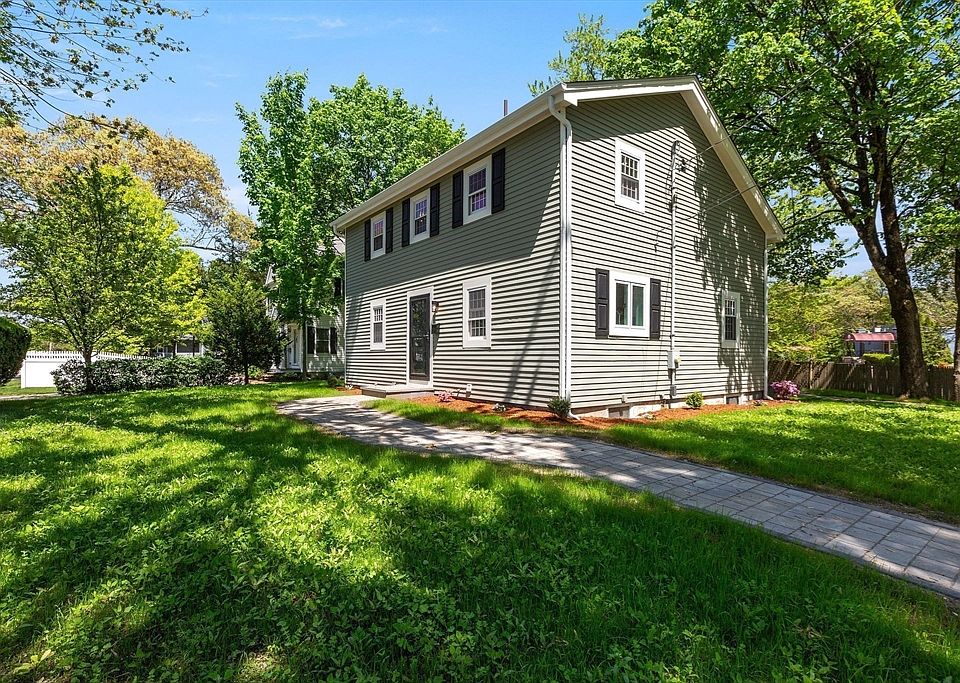 This beautifully upgraded home is ready for modern living, featuring ample natural light and a classic design. The completely remodeled salt box colonial sits on a spacious corner lot and includes an open concept floor plan. The professionally landscaped exterior boasts new walkways, custom blue stone steps, an oversized patio, and a custom block fire pit. Inside, you'll find 7-1/2 inch wide wire brushed oak flooring throughout the living areas. The gourmet kitchen features brand new stainless steel LG appliances, solid wood Shaker cabinets, and granite countertops with an insulated stainless steel sink. The bathrooms have 1.25-inch thick quartz countertops, and the home also includes new oak handrails and hardwood balusters.The finished basement is ready for use as a game room or office, with washer and dryer hookups on both levels and a cedar closet upstairs for extra storage. Attention to detail is evident throughout. See attached addendum for specifics.