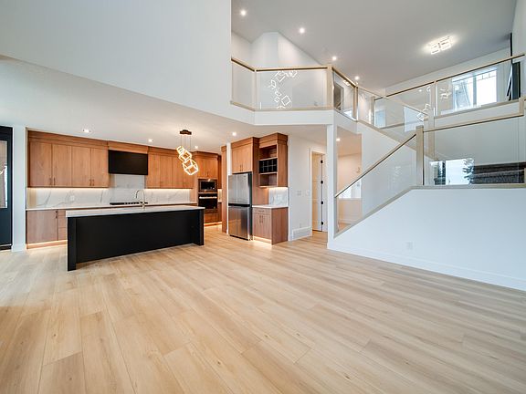 This SHOWSTOPPING TRIPLE CAR GARAGE WALKOUT home has every detail thoughtfully curated. Greeted by a bright, open layout w/9’ ceilings, 8’ doors, & premium finishes throughout. A dreamy chef's kitchen impresses w/ALL APPLIANCES INCLUDED, extended UPGRADED cabinetry w/ambient under lighting & sleek QUARTZ counters. An OPEN-TO-ABOVE great rm showcases a dramatic floor-to-ceiling CUSTOM millwork fireplace feat. wall. A flexible main den/4th bedrm pairs perfectly w/a 1/2 bath steps away. Upstairs, find a full bath, & unwind in a LARGE bonus rm w/a 2nd fireplace,+ 3 SPACIOUS bedrms incl. a LUXURY 5pc primary retreat w/dual sinks, HEATED TILE FLOORS, & a massive WIC conveniently connected to the upper laundry rm w/sink. An unfinished walkout basement offers endless possibilities & no rear neighbours means a serene backdrop from both the upper deck & lower patio. Complete w/exterior GEM lighting, WINDOW COVERINGS, & smart Ecobee thermostat, this home delivers turn key comfort, luxury & style from top to bottom.