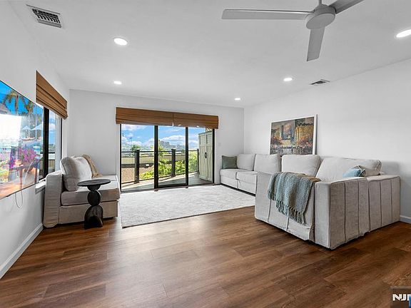 Experience private luxury living in this stunning 2 bedroom, 2 bath Condo in the heart of Edgewater, NJ. Beautifully renovated living space, this condo offers two expansive new glass balconies w/ breathtaking views of NYC and the Hudson River, perfect for relaxing & enjoying the stunning sunsets. The expanded kitchen with top-of-the-line Samsung appliances, quartz countertops, & plenty of soft-close white cabinets is perfect for the aspiring chef. Brand New Washer/Dryer and 1 covered parking included with tons of street parking available! The spa-like rainfall shower in the full bath & cozy half bathroom in the hallway offer a touch of luxury, while the brand new flooring throughout the apartment creates a bright and modern feel. With easy access to buses to NYC & a ferry just minutes away, commuting to work or exploring the city has never been easier. Located in close proximity to some of the best restaurants, shopping, & schools in Edgewater. Seller will pay off entire Special Assessment at closing.