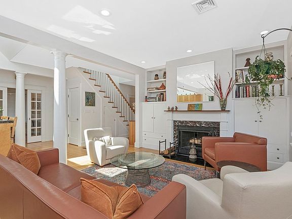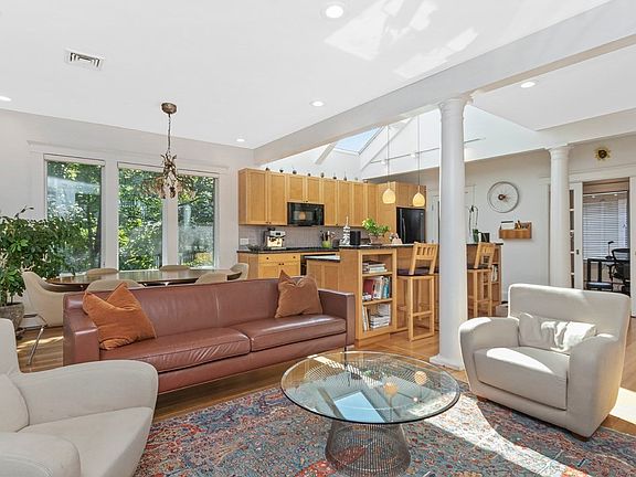 Tastefully renovated, unique condo in a prime cul de sac location! This remarkable home has four spacious bedrooms plus an office, three full bathrooms, two parking spots (one garage and one outside), shared backyard and the home is directly adjacent to the Amos A. Lawrence K-8 school, overlooking its cherished neighborhood park. The vaulted ceilings with skylights throughout fill this cozy home with sunlight, and contrast with the natural wood of the refinished floors and the spacious kitchen cabinets. Beautiful views of the park can be appreciated from the 13 windows replaced in 2018 and two large decks.The unit also has central air conditioning installed in 2022, wood burning fireplace repointed in 2020 and a private large basement with huge potential for a playroom or an extra office. Conveniently located near Coolidge Corner, Longwood medical area, train (C & D Green lines), Coolidge Corner theatre, shops, restaurants and much more. This is an absolute gem and a rare opportunity!