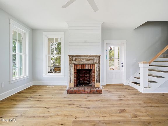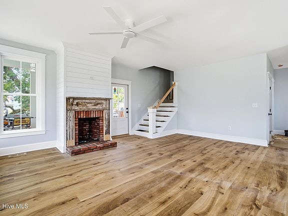 This 3 bedroom, 2 1/2 bath home boasts an open floor plan with abundant natural light and front and side porches. The primary bedroom is downstairs and 2 guest rooms are on the 2nd floor with a built in workspace between.