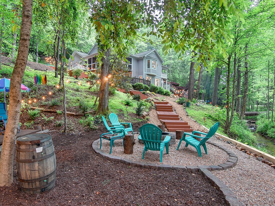 Tucked away in Hendersonville, this enchanting vacation rental is the perfect spot for your next retreat. This 1-bedroom, 1-bath guest house unit is packed with all the ideal amenities: a romantic private patio overlooking Perry Creek, Smart TVs, 2 fire pits, a well-equipped kitchen, and multiple decks! Ready to explore? Adventure through the Dupont National Forest, hike the Ecusta Trail, drive the Blue Ridge Parkway, or spend a day in Asheville or Hendersonville. An unforgettable stay awaits!