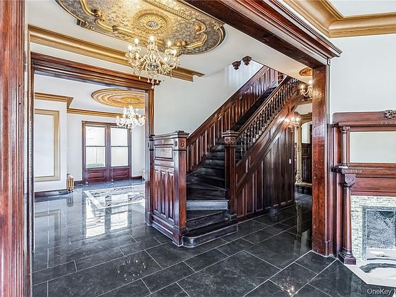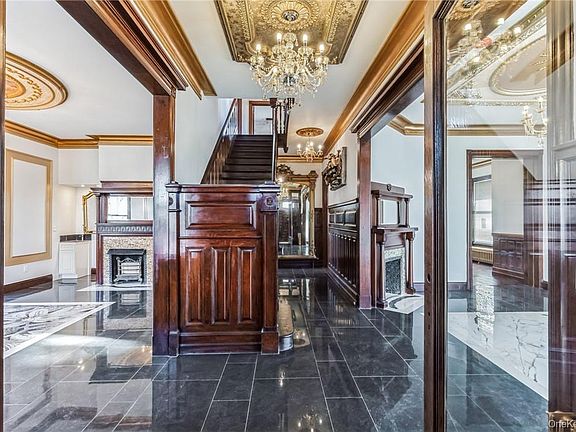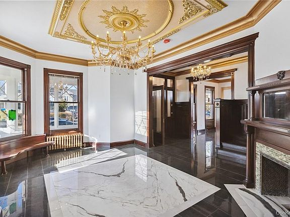 The state-of-the-art chef's gourmet kitchen opens to living and dining rooms. Six bedrooms, including two large bedrooms with original fireplace, 4.5 fully tiled bathrooms, and original restored molding throughout the house. The magnificent stairway from 1st to the third floor has been meticulously restored to original details large entertainment room can be used for a 20-seat movie theater and original one-of-a-kind radiators. Full-size wall antique mirror and beautiful wall hanging artwork, magnificent ceiling tile with tasteful color chandeliers throughout the house. The front wrap-around close sunroom is perfect for entertainment, with gorgeous quality Italian tile floors.