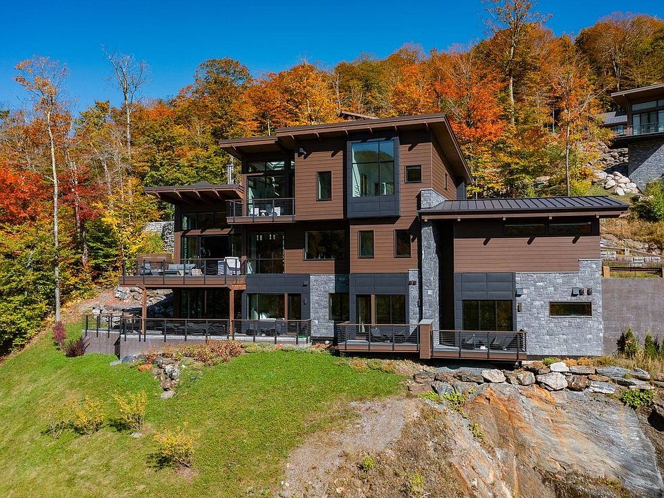 Experience unrivaled views and a premier, slopeside, Spruce Peak location in this newly constructed, magnificent home. This modern mountain residence was designed by renowned alpine architects Zehren & Associates with floor-to-ceiling glass walls, seamless indoor-outdoor living, and an “infinity view” to Vermont’s natural beauty from every room. Entertain or unwind in world-class amenities including an endless pool and outdoor jacuzzi, custom Japanese soaking tub, infrared sauna, media/game room, and three fireplaces for cozy après-ski evenings. Crafted with precision and curated for luxurious mountain living, this fully-connected smart home features efficiencies such as radiant heat, motorized window shades, an elevator, security system, ski room, executive office, heated garage, primary bedroom with dual walk-in closets, and a backup generator. Each bedroom suite is thoughtfully designed for comfort, privacy, and vantage, and all bathrooms are distinctively designed. The house is under full developer/builder warranty for an additional 1 year. Ski-in/ski-out and just steps from skiing, golf, fine dining, and year-round adventure at Spruce Peak village, 101 Switchback is the ultimate turnkey retreat.