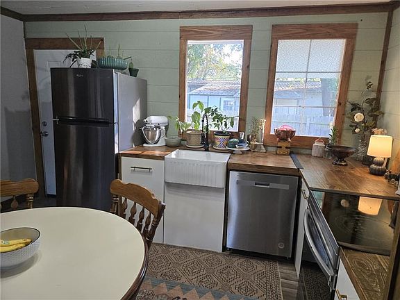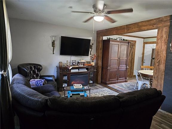 Welcome home to this inviting property in the heart of LaCygne, Kansas! This beautifully maintained home offers a warm, rustic feel with modern updates throughout. It just needs your finishing touches to make it yours. The open-concept living and dining areas create the perfect space for relaxing or entertaining, and the kitchen features plenty of natural light, stainless steel appliances, and a cozy dining nook.