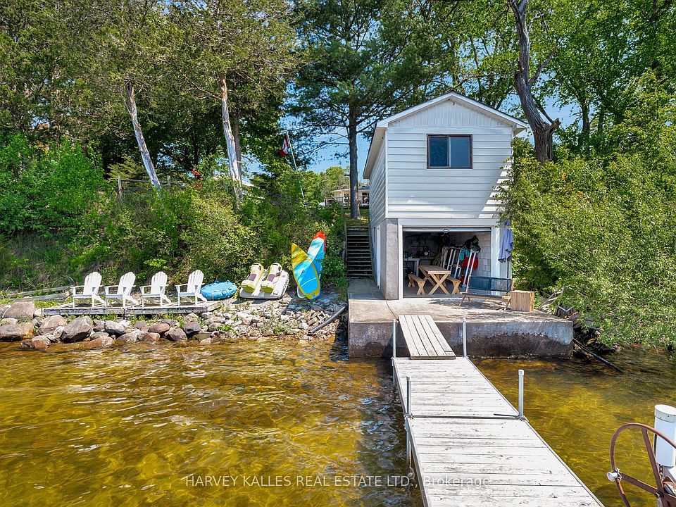 Welcome to 101 Treasure Cove Lane, a sweet 3-season waterfront cottage in Prince Edward County. Positioned in a quiet cove of Adolphus Reach, you can sit on your dock and watch the Glenora Ferry pass by across the bay. The main cottage features one bedroom, one bathroom, and an open-concept kitchen, dining, and living area with a patio door walkout to your deck overlooking the backyard and water. Many recent updates including the roof in 2019, and the kitchen, bathroom, flooring, and walls in 2021. The backyard slopes gently to the water and offers plenty of room for a fire pit, patio table, and yard games. The boathouse is a standout feature of this waterfront property. Use it as is, with storage for all your water toys on the lower level and two extra guest bedrooms on the upper level; ideal for extra family or overflow space. Or let your imagination run wild and transform this boathouse into something truly exciting. Take a few steps down to your mixed shoreline and jump into some of the best swimming waters around The County. Set up your lawn chair and enjoy the privacy provided by the mature trees. Located less than 15 minutes from downtown Picton and just minutes from Lake on the Mountain, Cressy, and Waupoos.