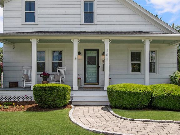 Welcome to this meticulous & charming 1904 Farmhouse in the Oaklawn neighborhood of Cranston. This home has been impeccably maintained over the years & has been updated throughout. Upon entering you'll notice the welcoming front porch which leads you into the living room. This large room offers a great space to sit & relax, entertain, or play. The fireplace adds a nice ambiance to the room. From here, you'll enter the dining room with lovely built-ins including marble tile back splash. Off the dining room is the kitchen which also has marble tile back splashes, new stainless steel appliances, and wood cabinets. Completing the first floor is the updated half bath, laundry area, and home office. Upstairs are 3 bedrooms with a good amount of closet space and the full bathroom. Throughout the home are refinished hardwood floors. The basement has had interior foundation restoration, and dry lock moisture barrier protection. The home sits on a beautiful corner lot with a fenced in yard. There's also a new patio and retaining wall. Nothing left to do but move in, schedule your showing today!