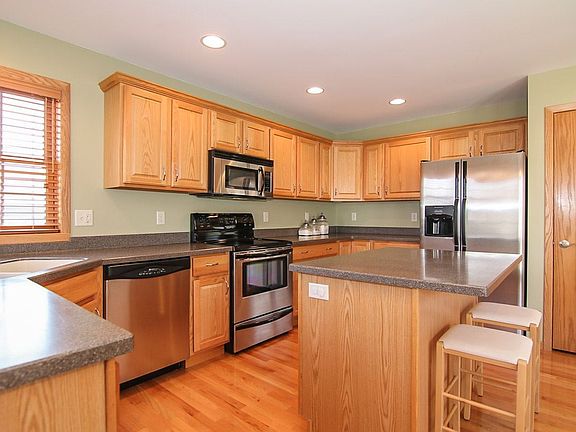 Amazing 4 bedroom + office and 3 full bathrooms. Kitchen has island w/ breakfast bar, Corian counters, stainless, abundant cabinetry & pantry. Dinette with large deck & a perfect backyard. Spacious living room with vaulted ceiling, gas fireplace with stone surround, open to formal dining & tiled entry. Hardwood throughout kitchen & dining area. Master has jetted tub, separate shower & w-in closet. Huge, open lower level has wet bar, gas fireplace, office, 4th bdrm, full bath & storage.