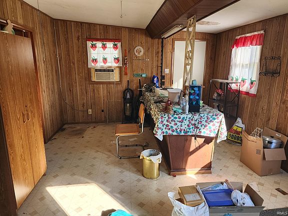 Over an Acre. Right across the street from the Wabash river. 2111 Sq ft all on one level. The sprawling ranch needs some upgrades but the key to this place is storage and a huge yard. 2 car attached garage. Large shed. Canning area. Extra back room could be a fourth bedroom.
