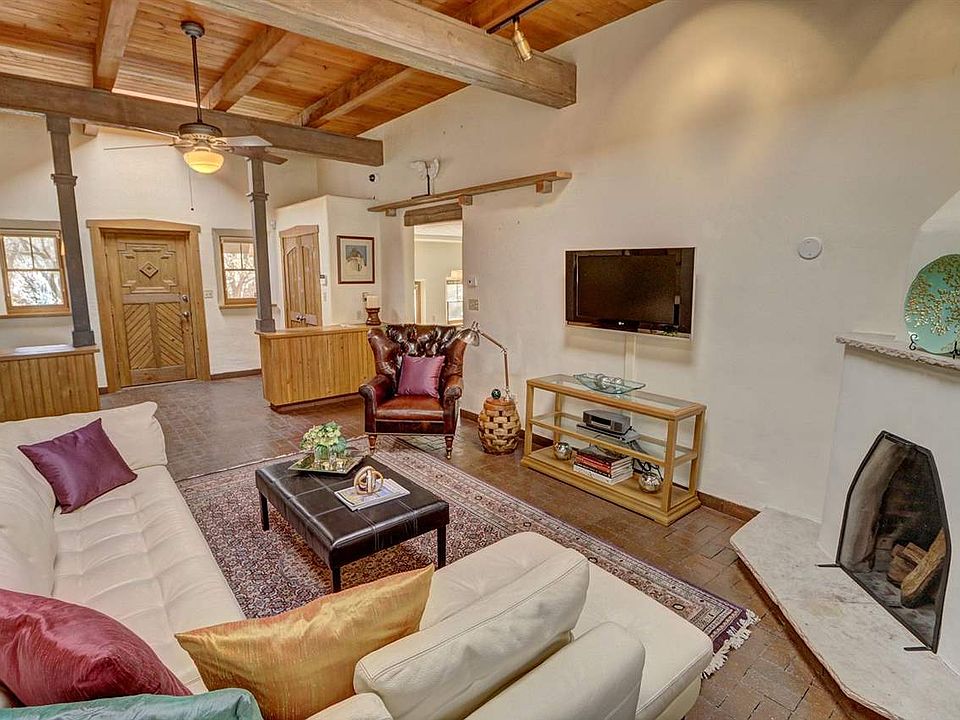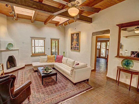 What an exceptional custom built home in a perfect South Capitol setting! Just off of Don Gaspar Avenue on a supreme 1/3 acre manicured corner lot, this Territorial home is set to impress. It has 3 bedrooms and 2 baths with an additional office that includes custom built-in bookshelves and a Murphy Bed. Also featured in the 2,316 heated square feet are high ceilings, Seguaro Latillas, hard trowel plaster walls, brick flooring, 2 wood-burning fireplaces, great bedroom separation, in floor radiant heating and a special master suite with walk-in closet. The recent , EXTENSIVE landscaping upgrades include a watering system, flagstone patios installed outside master bedroom, kitchen and dining room, new irrigation & sprinkler system, new water catchment system, an in-ground outdoor Jacuzzi, Pine, Fur, Aspen and 9 fruit trees were also planted. Tensor security lighting was also installed on the four corners of the roof. Did I mention the heated 2-car garage (588 +/- sq.ft.)? This is essential Santa Fe!