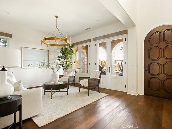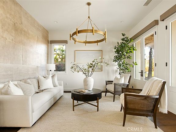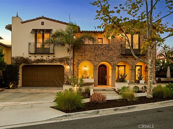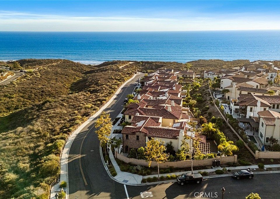 Life by the ocean is elevated to an impressive new level of luxury at this exquisitely appointed Azure home at Sea Summit in San Clemente. Beautiful ocean and canyon views are enjoyed from both levels of the residence and its welcoming front patio with built-in seating. Romantic architecture with stone accents and dramatic archways is embellished with drought-tolerant native landscaping and custom hardscaping on grounds that extend approximately 9,228 square feet. The sought-after corner homesite reveals a side patio with built-in seating, a private interior courtyard with fireplace, a sport court, and a resort-style backyard with infinity-edge spa, elevated deck with fire pit, a heated loggia with wood-plank ceiling, and a custom kitchen with grill, sink, refrigerator and bar. Interior spaces are sublime, with a soft-contemporary aesthetic that complements open living areas, a double-height foyer with arched entry door, four ensuite bedrooms, a loft and five baths. Approximately 4,244 square feet, the comfortably sized design showcases a formal living room with two sets of French doors opening to the front patio, a formal dining room with walls of glass doors leading to the courtyard and backyard, and a main-level guest suite with backyard access. The dining room flows effortlessly to the family room, where a fireplace, surround sound, and glass doors opening to the loggia are displayed. The kitchen is a masterpiece of fashion and function, blending top-of-the-line Wolf and Sub-Zero appliances with on-trend stone countertops, Shaker cabinetry, a large island with seating, butler's pantry, stainless steel apron sink, and designer tile backsplash. Numerous windows illuminate the home with natural light that accentuates wood flooring, premium carpet, custom paint and wall treatments, sophisticated LED lighting fixtures, ceiling fans, built-in cabinetry throughout, and Juliet balconies in many rooms. Enjoy romantic ocean views from the deck off a primary suite that hosts an oversized walk-in closet with built-ins, a soaking tub and spacious shower. Solar power, an expansive laundry room and a two-car garage are also featured. Sea Summit is nestled along oceanfront bluffs and presents scenic trails, beach access, preserved canyons and open space, five community parks, and a lux clubhouse with pool, spa, gym and lounge areas. Restaurants and shops are moments from home at Outlets at San Clemente, and award-winning schools are nearby.