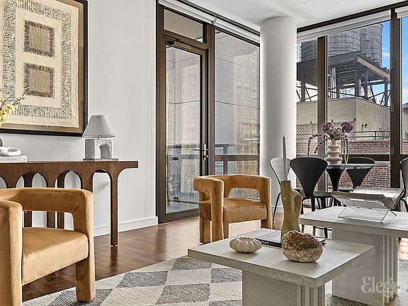 Experience luxury living in this stunning 2-bedroom, 2-bathroom home at the Chelsea Stratus, a premier full-service building in the heart of Chelsea. This elegant residence features a private balcony overlooking a beautifully landscaped courtyard, creating a serene retreat in the middle of the city. Oversized windows flood the space with natural light, enhancing the bright and airy atmosphere.