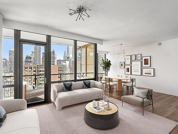 Soaring high above the city on the 33rd floor, Residence 33A at Chelsea Stratus offers a spectacular 1,555 SF corner layout with 2 bedrooms, 2.5 bathrooms, and a private balcony. This rare offering features nearly 10-foot ceilings and dramatic floor-to-ceiling windows, showcasing sweeping north and west exposures with iconic vistas of the Empire State Building, dazzling sunsets, and Hudson River views from both the balcony and living room.