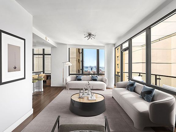 The expansive 20' x 25' living and dining area is perfectly proportioned for both grand entertaining and everyday living, bathed in natural light throughout the day. A windowed chef’s kitchen is fitted with Subzero, Wolf, Viking, and Fisher & Paykel appliances, a Subzero wine fridge, custom cabinetry, and sleek stone countertops. The tranquil primary suite boasts seven closets and a spa-quality five-fixture bath with double vanities, a deep soaking tub, rain shower, and Grohe fixtures. A gracious secondary bedroom with en-suite bath, an elegant powder room, and Miele washer/dryer complete the residence.