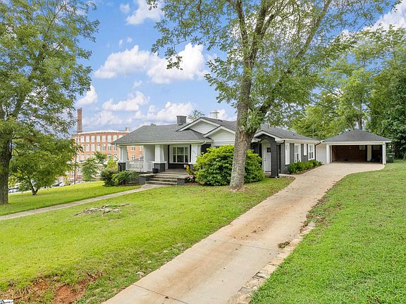 OPEN HOUSE SUNDAY 2-4! Adorable one-level 3 bed / 2 bath cottage with powder room situated on a corner lot just a short walk from the Easley Silos or just minutes from the new Southern Weaving Food Hall. Enjoy the convenience of dining and entertainment just steps from your front door, then stroll home to this beautifully updated residence. The home features a spacious detached 2-car garage with extra room for storage or hobbies, plus a greenhouse perfect for year-round gardening. Inside, you'll find stylish finishes including stainless steel appliances, updated bathrooms, and an electric fireplace that adds a warm, inviting ambiance. Washer, dryer, and refrigerator convey. Relax and unwind on the charming wrap-around porch ideal for morning coffee or evening sunsets. A perfect blend of comfort, character, and location!