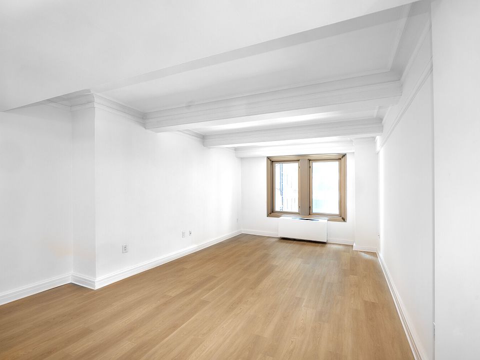 Large one-bedroom facing West with tall beamed ceilings, large windows, and crown moldings. Separate kitchen features custom cabinetry, stainless steel appliances, and granite countertops. Bathroom has been newly renovated with modern finishes. Excellent storage with four large closets. Claridges is a full-service, white-glove doorman building with elevator, laundry, fitness center, and in-house Resident Manager.