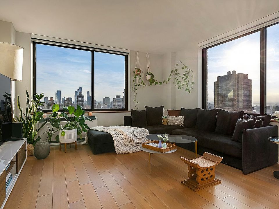 NEWLY RENOVATED – Rarely available, this hi-floor corner 1BR/1.5 Bath (878 square foot) apartment offers amazing direct south and west city/river panoramas and blazing sunsets. Apartment features include: Bathrooms finished in Bianco Dolomiti marble with Lacava floating vanity, Robern recessed lighted cabinets and Dornbracht & Toto fixtures & fittings, new hardwood oak floors throughout, custom closet interiors, motorized remote control Lutron solar and black out shades, Lutron lighting system, a windowed kitchen with granite countertops, upgraded stainless steel appliances and undercounter lighting, individually controlled HVAC units housed in custom cabinets topped with Cesarstone controlled by wall mounted thermostats and a washer/gas vented dryer. Full-service amenities include an attentive 24-hour doorman and concierge. NYC’s #1 rated Equinox Sports Club sits directly under the building, where you can enjoy spa treatments and a state-of-the-art workout. The superior location is just steps away from Central Park, abundant shopping, top restaurants, Lincoln Center, Lowe’s Theatre and the Subway.