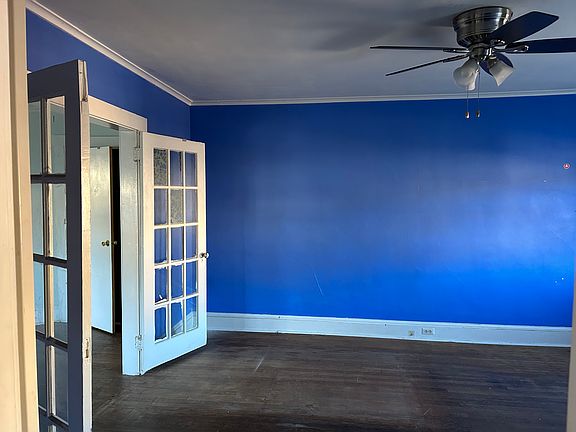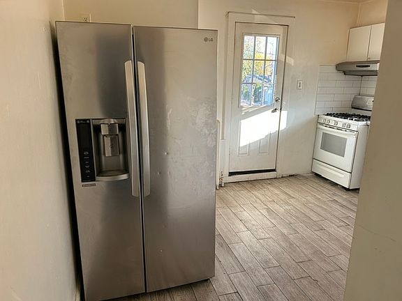 Modern kitchenStainless steel fridgeHardwood floorsLarge sized bedroomsFrench door